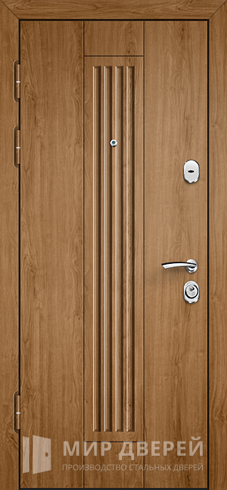 Эта дверь разработана для тех, кто ищет повышенную прочность и устойчивость к интенсивной эксплуатации. Снаружи поверхность защищена порошковым термонапылением, которое образует особо крепкий слой, устойчивый к царапинам, ударам и воздействию влаги, сохраняя привлекательный вид долгие годы. Внутренняя сторона облицована плитой МДФ в коричневом оттенке, что добавляет двери эстетичности и позволяет органично вписать её в интерьер квартиры или офиса. Именно поэтому антивандальная входная дверь в квартиру №64 востребована как в жилых помещениях, так и в частных домах или рабочих пространствах. Основа конструкции выполнена из профильных труб с ребрами жесткости и усилена стальным листом толщиной 2 мм, что обеспечивает высокий уровень защиты от взлома. Для лучшей герметичности применяются два контура резинового уплотнителя, препятствующие попаданию сквозняков и пыли. При необходимости дверь можно дополнить шумо- и теплоизоляцией, а также выбрать варианты отделки в соответствии с интерьером. Модель сочетает надежность, долговечность и лаконичный внешний вид.