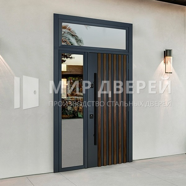 Эта входная дверь, выполненная с использованием МДФ ПВХ и предназначенная для установки в частных домах, квартирах и офисах, сочетает в себе надежность и стиль. Благодаря профильной трубе 50х25 мм в качестве каркаса и полотна, а также металлическому листу толщиной 2 мм, дверь обеспечивает повышенную безопасность. Профильные трубы 40х25 мм укрепляют конструкцию, делая её более жесткой и устойчивой к деформации.